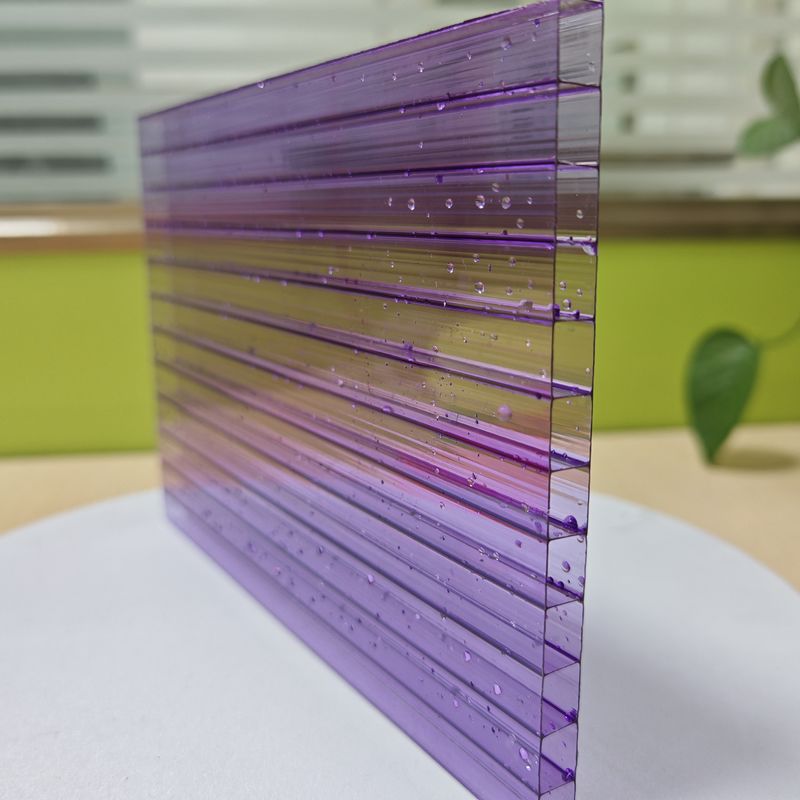 について紫色ポリカーボネートホールシートは,高品質の純ポリカーボネート樹脂で作られた半透明で軽量な屋根とガラスの材料です.それはホールまたは多壁構造を持っています.熱隔熱が優れ 衝撃耐性も高い.紫色濃度は明るさを高め,温かい色で柔らかい光を拡散させ,装飾や機能的な用途に最適です.